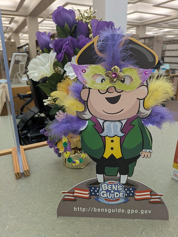 Ben has been spotted at the New Mexico State Library poised and ready to celebrate Mardi Gras.