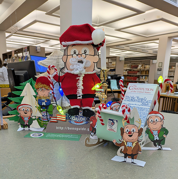 Little Ben and his ever smaller helpers are bringing the gift of Pocket Constitutions this season at the New Mexico State Library in Santa Fe, NM.